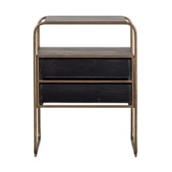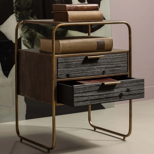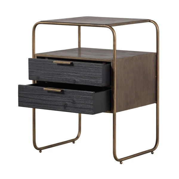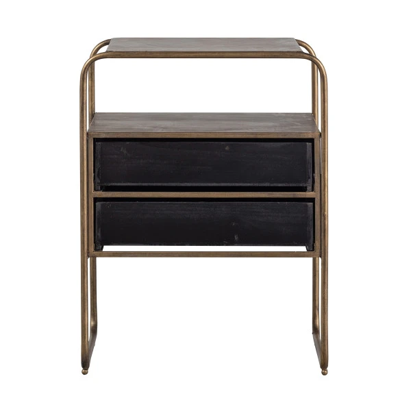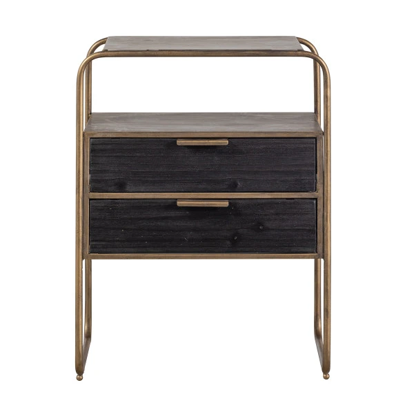 Het BePureHome Polite nachtkastje brengt een vintage sfeertje naar je slaapkamer. Het metalen frame heeft ronde vormen en is afgewerkt met een antique brass finish: warm en stijlvol! De diepe nerven in de zwart gelakte lades van hout geven het nachtkastje een robuust karakter.