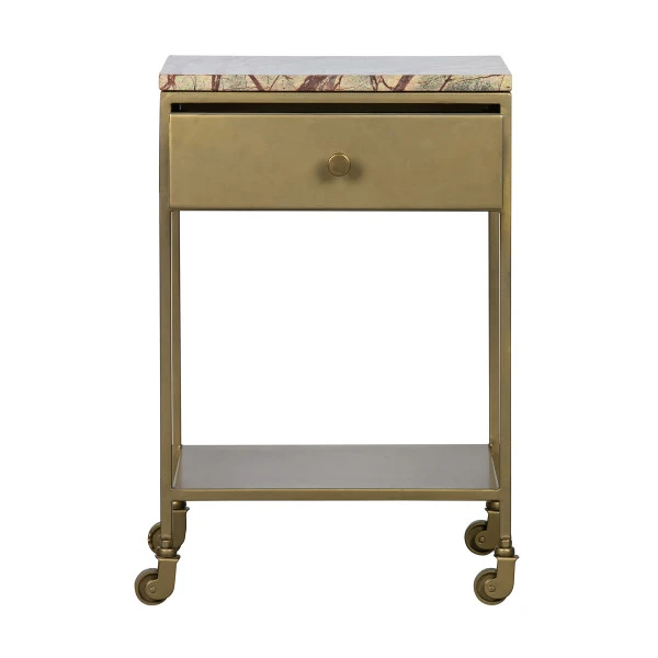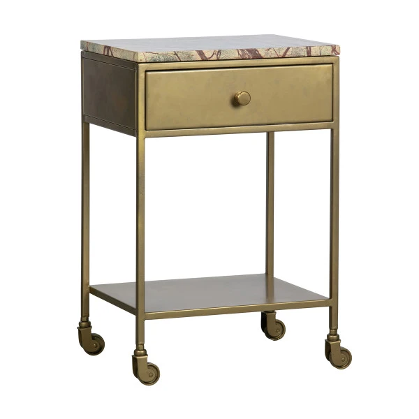 BePureHome Nachtkastje Op Wielen Goud Marmer