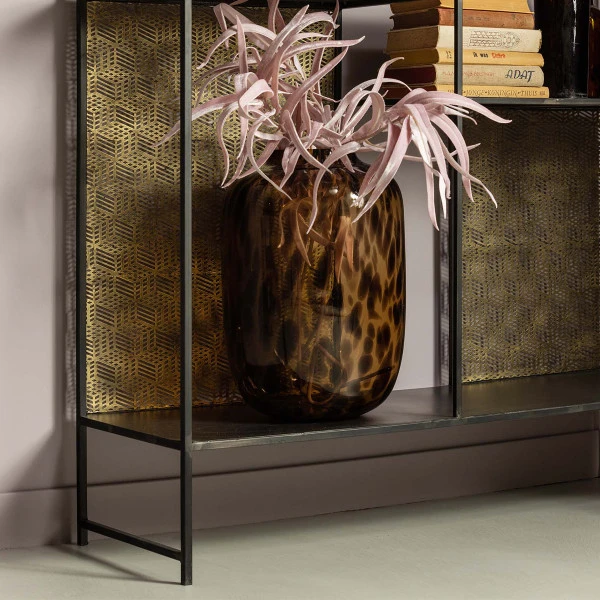 Gebruik de BePureHome Framed vakkenkast voor je mooiste serviesgoed, of zet er kunst en boeken in. Met een formaat van 110 bij 185 centimeter kun je heel wat spulletjes kwijt in deze vakkenkast! Tegen de muur komt de antique brass kleur en speelse print mooi uit.