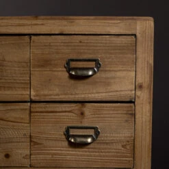Van de Dutchbone Six ladekast knapt elk interieur op: de brede kast van vurenhout brengt veel, heel veel sfeer! Het vurenhout is voorzien van een antieke finish die perfect samengaat met de stalen handgrepen in vintage stijl. Aan de binnenkant zijn de 6 lades bekleed met textiel. Een gezellige en karaktervolle ladekast!
