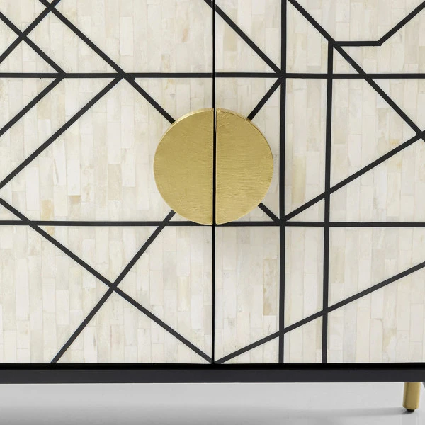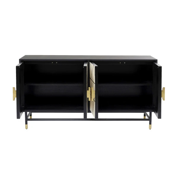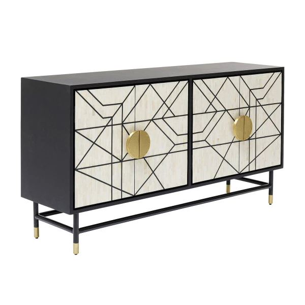 Het Kare Design Credenza dressoir heeft een design zo bijzonder dat het bijna kunst is. De deuren zijn ingelegd met witte vlakjes, waarbij details van goud voor een chique effect zorgen. Het zwart-wit dressoir vormt echt het pronkstuk van je interieur!