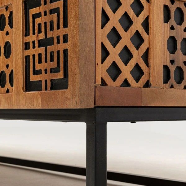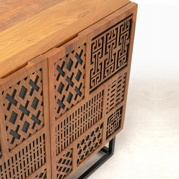 - Buitenkant van het dressoir gemaakt van masief mangohout