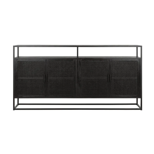 Dit Must Living Spiderman dressoir heeft een stoere uitstraling, maar het rotan zorgt voor een bijzonder geheel. De webbing deuren en zijdes zijn zwart, net als het metalen frame. Met een breedte van 180 centimeter kun je heel wat spulletjes kwijt in dit dressoir! Je witte serviesgoed vormt een gezellig silhouet achter de rotan webbing deuren. Het open vak en bovenblad bieden plaats aan decoraties.