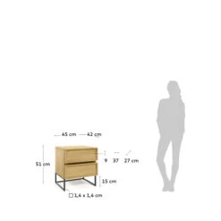 Wat dit Kave Home Rasha nachtkastje zo sfeervol maakt is niet alleen het warme, natuurlijke eiken; maar vooral ook de boomstam vormen in de lades. Alsof het nachtkastje zojuist in elkaar is gezet door de plaatselijke houtbewerker, van de eik uit je tuin! In de twee lades van het nachtkastje kun je bovendien alle boeken, crèmes en opladers wegbergen die anders altijd een rommeltje maken van je slaapomgeving.