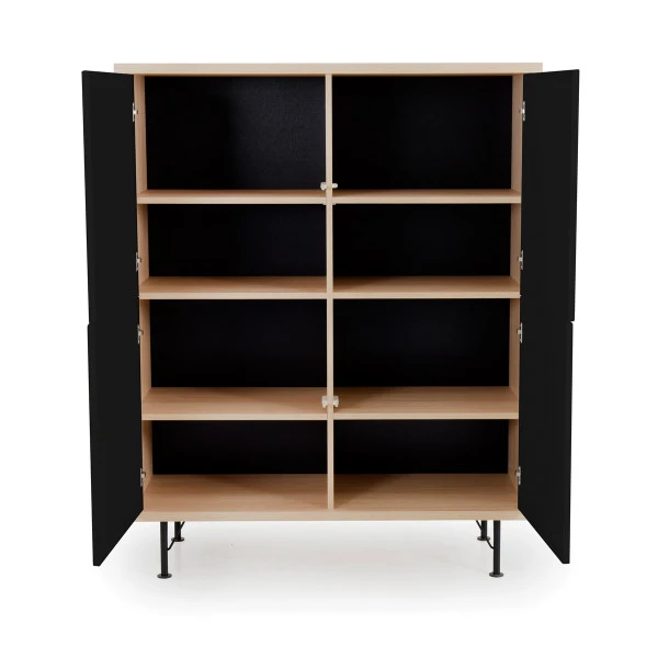 De eiken Tenzo Flow wandkast heeft een aantal uitneembare planken, zodat je de kast voor verschillende soorten spullen kunt gebruiken! Zet bijvoorbeeld administratieve mappen aan de ene kant en berg spelletjes aan de andere zijde op. Of geef je alledaagse serviesgoed een plek in de eiken wandkast. Welke variant is jouw favoriet: eiken met zwart of met wit?