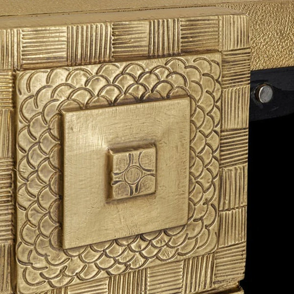 - Ombouw en deuren voorzien van staalplaat met goudkleurige vintage lak