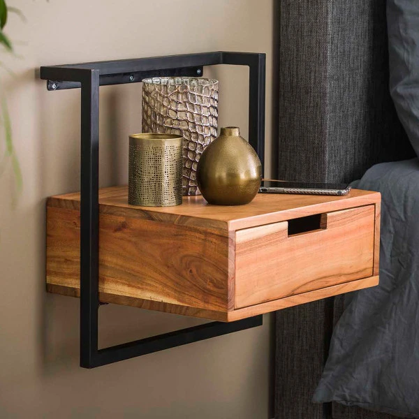 Hangend nachtkastje industrieel acacia