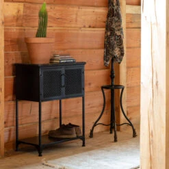 In de Dutchbone Denver serie vind je behalve deze lage wandkast ook een hoog model van 161 centimeter, met dezelfde roosterdeuren. Beide kasten hebben een half open design, zodat je ook een paar mooie decoraties in de zwart metalen wandkast kunt zetten.