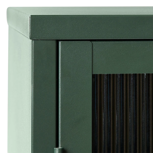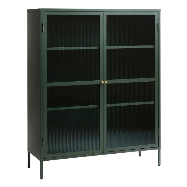 In deze lage wandkast van 111 bij 140 centimeter kun je een heleboel serviesgoed kwijt. Of zet de wandkast in de woonkamer en gebruik voor spelletjes, wijnglazen en boeken. De lage wandkast heeft deuren van ribbelglas, die voor een retro look zorgen. Een speels contrast met de ombouw van metaal! Welke kleur wandkast staat het beste in jouw interieur: blauw, rood, groen of zwart?