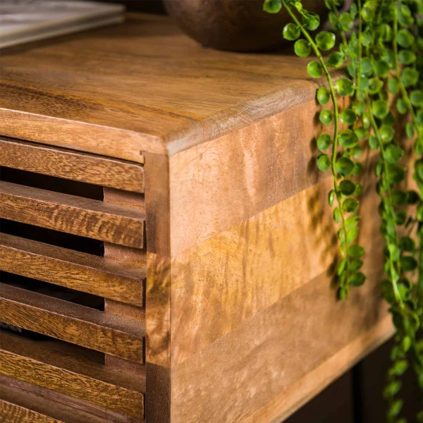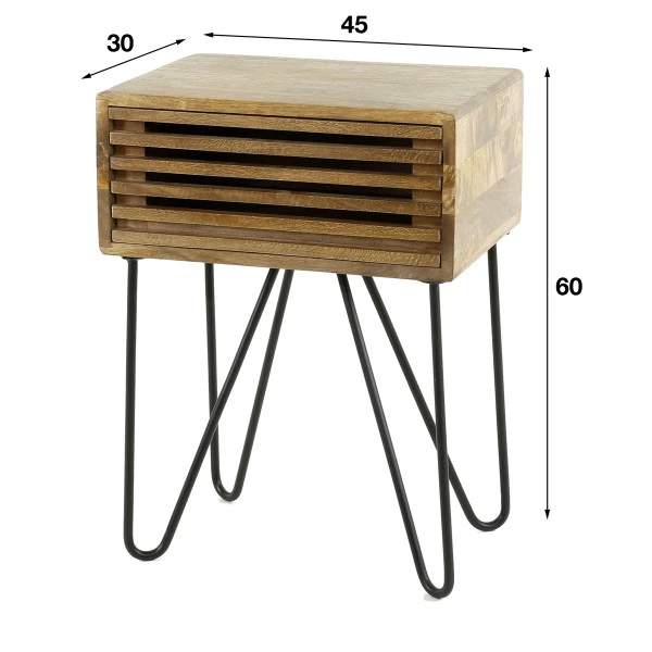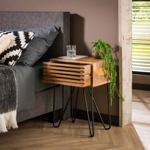 Mangohouten Nachtkastje Met Lade