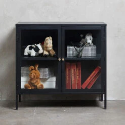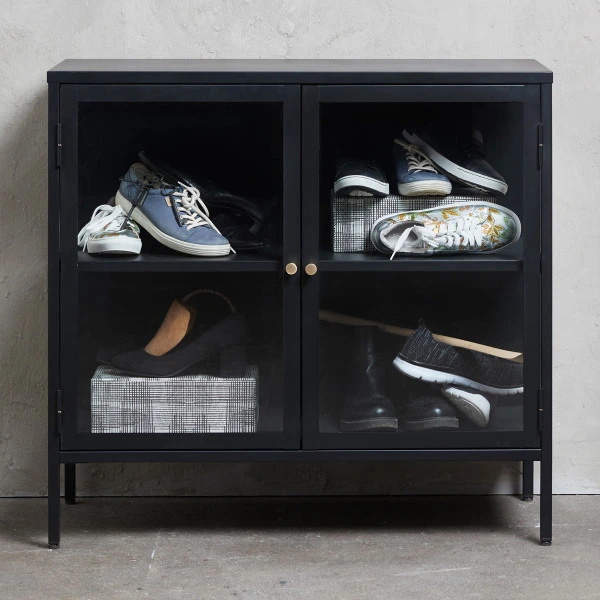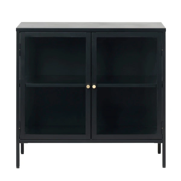 Voor dit metalen kastje heb je altijd wel plek in huis. Met een formaat van 90 bij 85 centimeter is het ideaal voor onder de vensterbank, in het nisje op de hal of juist in de woonkamer met een kunstwerk er bovenop! Achter de 2 glazen deuren van het metalen kastje kun je mooie spulletjes uitstallen: van serviesgoed tot boeken. Ook leuk als schoenenkast in de hal.