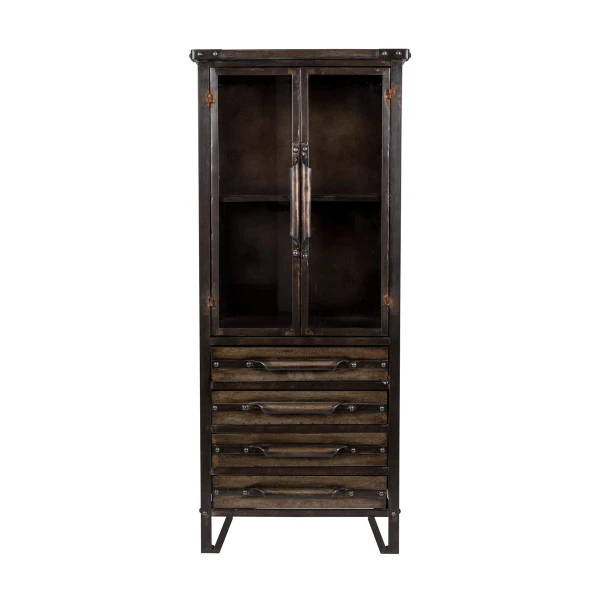 In deze metalen vitrinekast komen je wijnglazen eindelijk tot recht. Of berg je mooiste reissouvenirs van over de hele wereld op achter de glazen deuren, zodat ze stofvrij blijven en je er elke dag van kunt genieten! De metalen vitrinekast beschikt ook nog over vier lades voor losse rommeltjes zoals post, pennen en opladers.