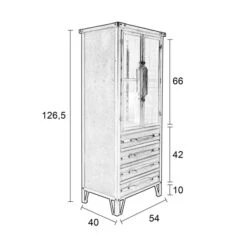 Bijzonder aan de metalen vitrinekast is de roestafwerking van het ijzer; daardoor past de kast mooi in een vintage of industrieel interieur. Met een breedte van 54 centimeter vind je altijd wel een plekje voor de vitrinekast! Leuk in combinatie met een bruin leren bankstel of een houten dressoir.