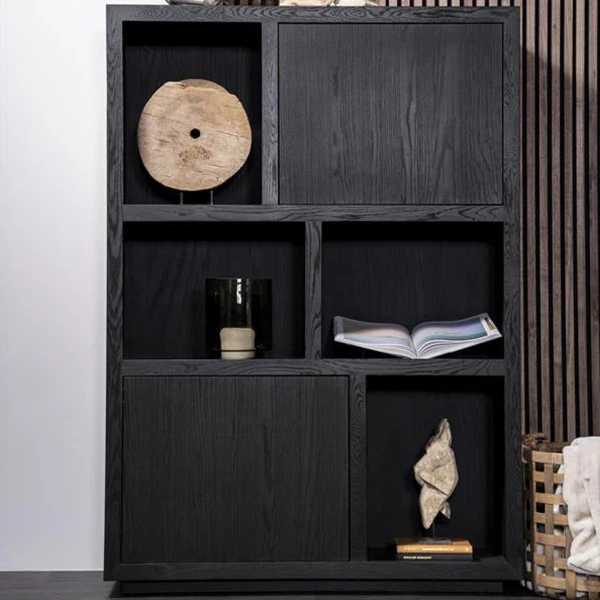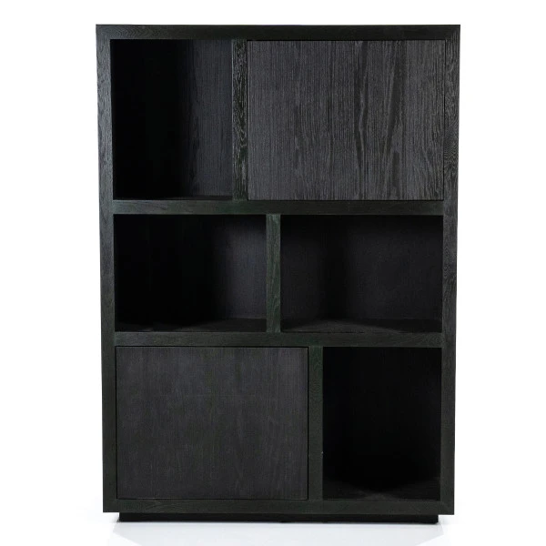 De Eleonora Helsinki kast heeft een strakke vormgeving die mooi combineert met een moderne woonstijl. Tegelijkertijd zorgt de houtstructuur in het zwart eiken voor karakter. Vul de open vakken met boeken, serviesgoed en gezellige decoraties. Voor administratie en stapels spelletjes is plaats achter de deuren van zwart eiken.