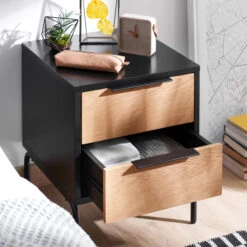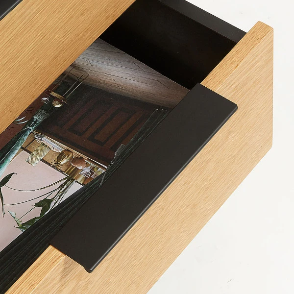 Het Kave Home Savoi nachtkastje heeft een tijdloos design dat samengaat met verschillende interieurstijlen. In de ombouw van mat zwart gelakt hout zorgen de naturel eiken lades voor een sfeervol element! Bovendien helpen ze je om je slaapomgeving netjes te houden. Berg er alle rommeltjes in op – van oordopjes tot tijdschriften- zodat je in alle rust kunt slapen! Bovenop het nachtkastje hoeft dan alleen je leeslamp te staan.