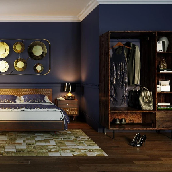 Met de meubels uit de Kare Design Ravello serie creëer je een gezellige, retro look. Daar zorgen de messing details en het prachtige sheesham wel voor! Kijk gauw in de serie voor een bijpassend dressoir of een sheesham spiegel om met je open kledingkast te combineren.