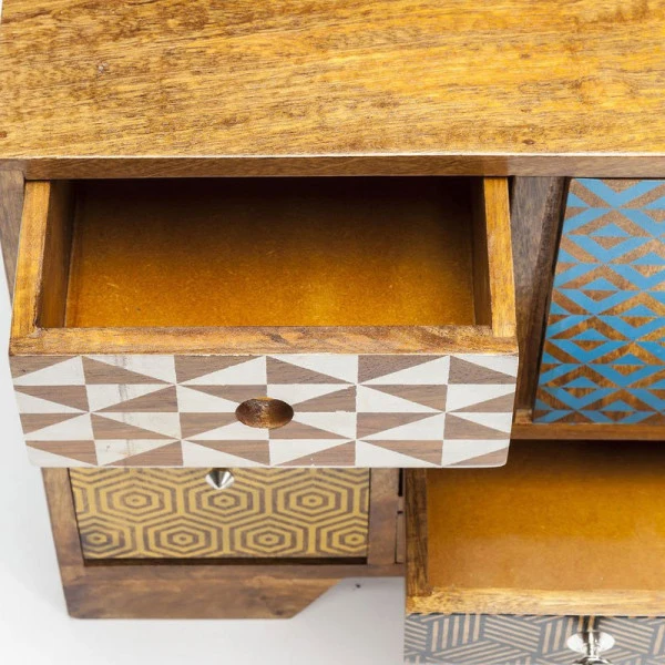 Naar het Kare Design Soleil tv-meubel blijf je kijken, zelfs als de televisie uit staat. Het design is strak maar speels, met retro lades en kastdeuren in speelse kleuren en patronen. In het open vak is plaats voor je apparatuur en dankzij de variatie aan opbergruimtes blijft je zithoek gezellig!