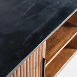 Kijk gauw naar de Eleonora Carter serie voor nog meer meubels van sfeervol mangohout. Zoals een bijpassend dressoir of een wandkast met dezelfde retro look. Dit tv-meubel is verkrijgbaar met een breedte van 125 of 180 cm. Omdat marmer een natuurproduct is heeft elke kast een uniek karakter!