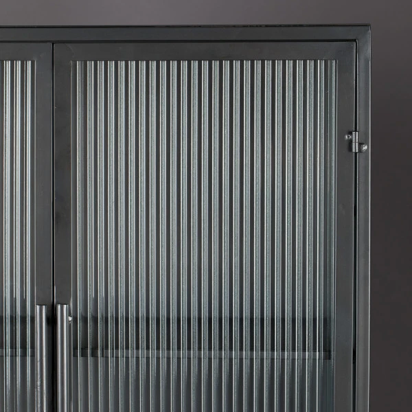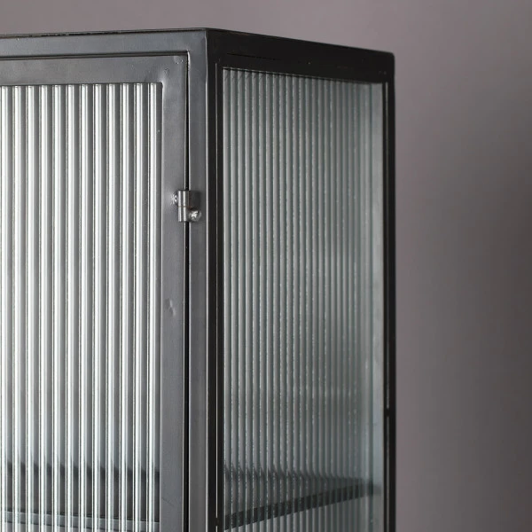 In de Dutchbone Boli vitrinekast is plaats voor je mooiste serviesgoed. Achter het ribbelglas zijn de contouren van de borden en bakjes nog net zichtbaar! Of gebruik de vitrinekast in de woonkamer voor boeken: de kleurrijke kaften fleuren je zithoek op subtiele wijze op. Dankzij de mix van ribbelglas en metaal past de vitrinekast mooi in een industrieel of retro interieur. De deuren zijn voorzien van magneetsluitingen.