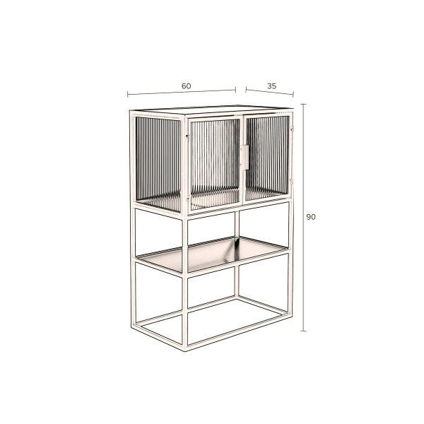 De Dutchbone Boli vitrinekast neemt een bescheiden ruimte in, maar voegt toch veel toe aan je interieur! Je kunt er namelijk allerlei leuke decoraties in en op zetten: van boeken achter het ribbelglas tot een bloemenvaas bovenop. Of geef de vitrinekast een mooie plek in de eetkamer en gebruik voor serviesgoed! De deuren van ribbelglas zijn voorzien van een magnetische sluiting.