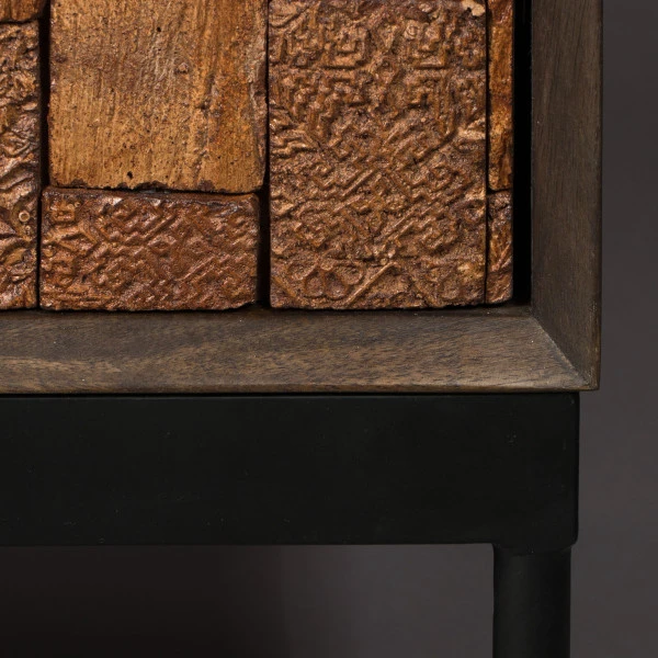 Gebruik het Dutchbone Chisel dressoir bijvoorbeeld voor hobby materialen, administratie of serviesgoed. Met een omvang van 100 bij 80 centimeter neemt het dressoir een bescheiden ruimte in, maar het kan precies het verschil maken tussen een rommelige en een gezellige woonkamer! En naar het snijwerk in de deuren van mangohout blíjf je kijken…