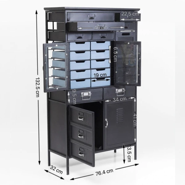 Deze Kare Design Art Factory kast heeft een zwarte afwerking, maar je vindt in de Art Factory serie ook een naturel houten variant. Terwijl de zwarte kast echt in een industriële woonstijl past gaat de naturel kast ook samen met een landelijk interieur.
