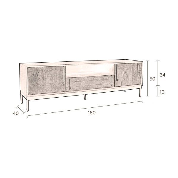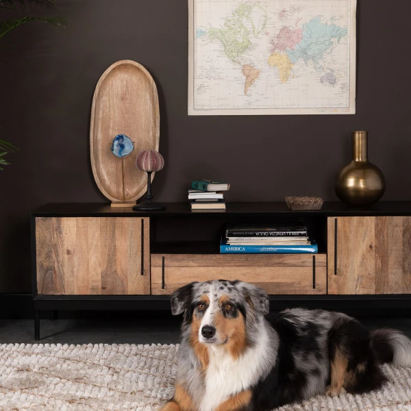 Dit Dutchbone Nairobi tv-meubel heeft een slanke lijn en brengt tegelijkertijd veel sfeer naar je zithoek. De massief houten frontjes zijn warm van kleur. Een gezellige basis voor je televisieapparatuur! Of gebruik het houten tv-meubel als laag dressoir. In de lade en kastjes is ruim plaats voor al die losse rommeltjes die anders maar in de woonkamer rondslingeren. Voortaan is de zithoek gezellig opgeruimd.