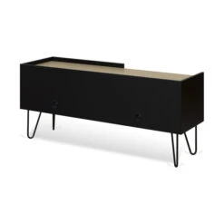 De meubels uit de TemaHome Nina serie gaan uitstekend samen met de Scandinavische design woonstijl. Behalve dit tv-meubel vind je in de serie ook een dressoir in mat zwart of wit, met eiken planken als sfeervol element.