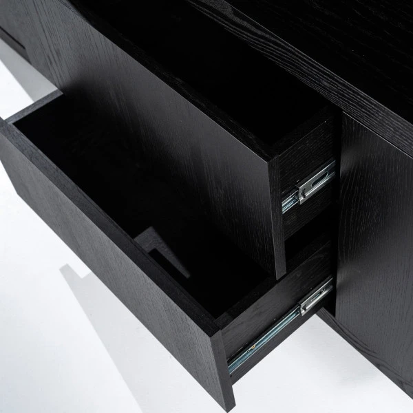 - Speelse indeling met vier deuren, twee lades en zes vakken