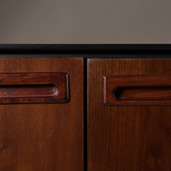 - Met 3 deuren van walnoothoutfineer met in ieder compartiment 1 legplank