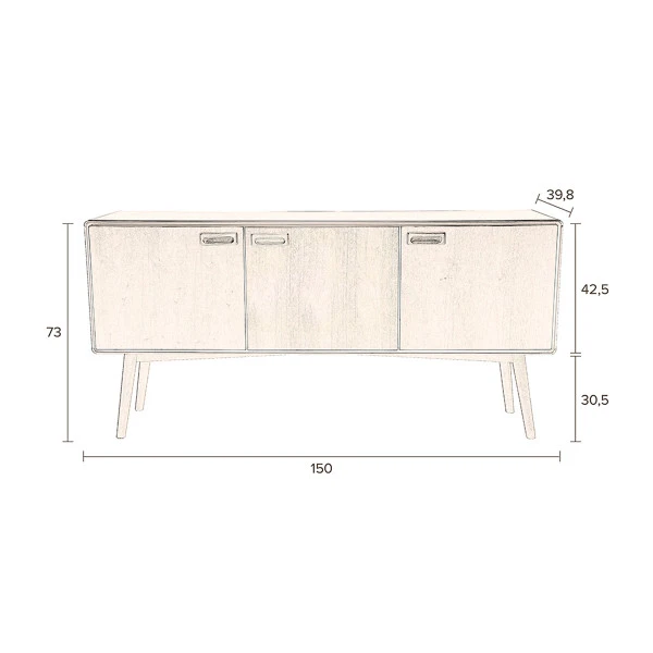 In dit Dutchbone Juju dressoir van 150 centimeter breed is veel plaats voor je serviesgoed, administratie of de losse rommeltjes die anders altijd de woonkamer zo ongezellig maken. Wil je een sfeervol, harmonieus geheel creëren in je interieur? Dan kun je het dressoir combineren met het bruin houten tv-meubel uit dezelfde Juju serie!