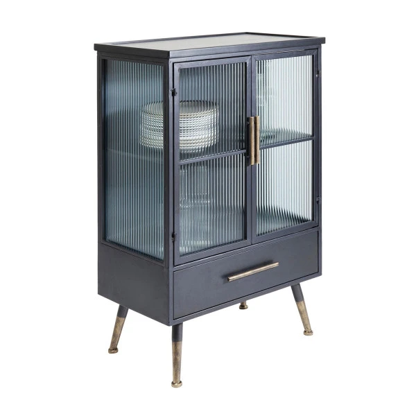 Deze Kare Design Gomera wandkast kun je voor allerlei spulletjes gebruiken. Zet bijvoorbeeld je mooiste wijnglazen achter het ribbelglas: de contouren zijn nog net zichtbaar. Of berg boeken met kleurrijke kaften op in de wandkast van zwart gepoedercoat staal met messing details. Ook in de eetkamer komt de 105 centimeter hoge wandkast van pas voor alledaags serviesgoed waar je gemakkelijk bij wilt kunnen!