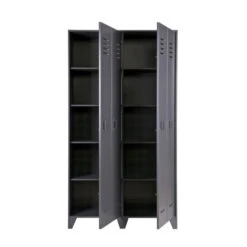 Bijzonder aan de Woood Stijn lockerkast is de mix van stijlen: het lockerdesign geeft een industriële uitstraling, terwijl het grenen voor een landelijk effect zorgt. Bovendien heb je keuze uit een witte en grijze variant. Welke past het mooiste in jouw interieur? Met een formaat van 103 bij 187 centimeter vormt de hoge lockerkast van grenen een bijzondere toevoeging aan je interieur.