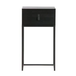 Het Woood Zola nachtkastje van zwart hout en metaal vormt een stijlvolle aanvulling op je slaapkamer. Dankzij het neutrale zwart is het gemakkelijk te combineren met vrolijk gekleurde gordijnen of dekbedovertrekken; maar natuurlijk staat het ook mooi in een rustige slaapkamer in antraciet. Combineer met moderne of industriële meubels!