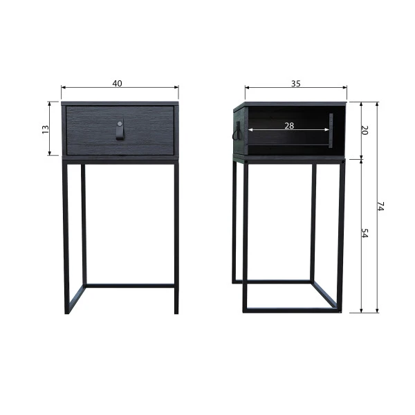 In het Woood Zola nachtkastje van zwart hout en metaal is precies genoeg plaats voor je telefoon, oordopjes en een nachtcrème. Bovenop zet je een mooi nachtlampje neer, of leg er je leesboek op als je al een lampje aan de muur hebt hangen! Dankzij dit nachtkastje is je slaapomgeving voortaan netjes opgeruimd en rustig.