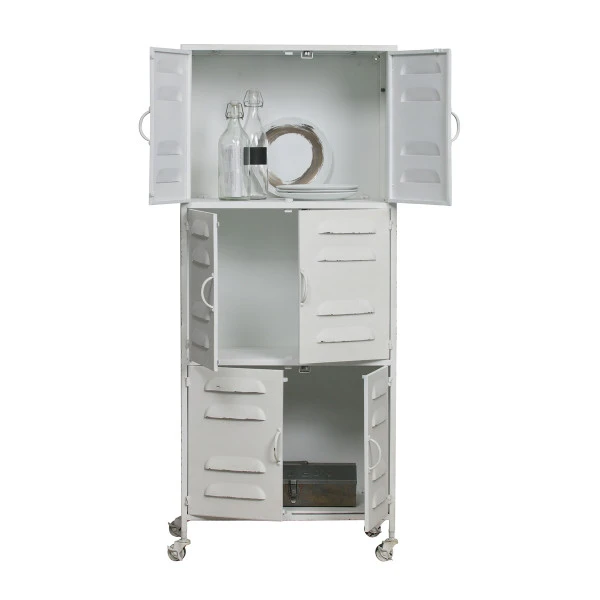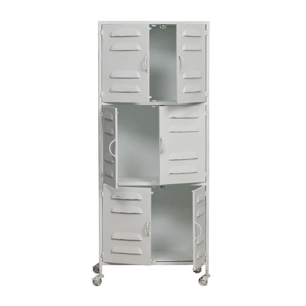 Gebruik de Woood Boaz lockerkast voor serviesgoed in de keuken; achter elk van de zes deurtjes kun je een ander soort servies zetten. Of zet de verrijdbare lockerkast in de woonkamer en vul met alle losse rommeltjes die anders je humeur altijd zo bederven! Voortaan is je woonkamer netjes opgeruimd.