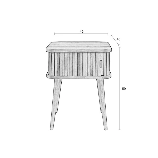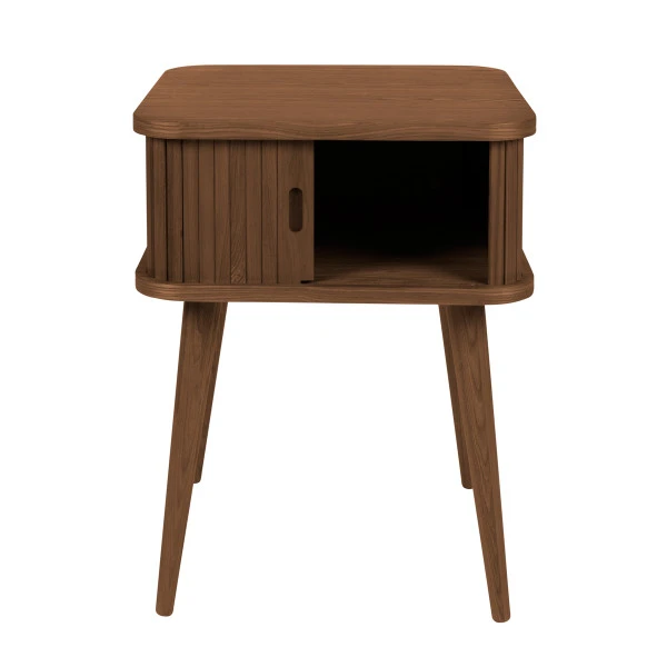 Met de Zuiver Barbier serie creëer je een speelse, retro sfeer in huis. Dit nachtkastje is ook verkrijgbaar in essen en zwart! Of gebruik als bijzettafel en combineer met een walnoot houten wandkast uit dezelfde serie. Kenmerkend voor de meubels zijn de afgeronde hoeken, de groeven in de deuren en de speelse poten.