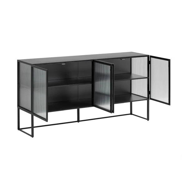 Dit Kave Home Trixie dressoir is ideaal voor het opbergen van serviesgoed. Door het ribbelglas zie je de vormen van je kommen, glazen en borden nog subtiel terug. Daardoor weet je meteen waar je welk servies hebt opgeborgen, en bovendien geeft het een gezellige sfeer in huis! Met een breedte van 160 centimeter kun je in het zwart dressoir heel wat spulletjes kwijt.