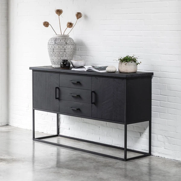 Zwart Teak Dressoir Industrieel Design