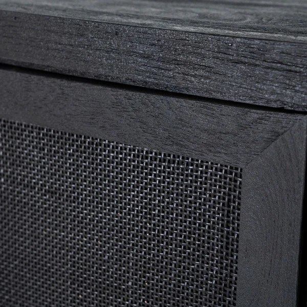 Je herkent de Eleonora Vic serie aan het speelse contrast tussen strakke vormen en natuurlijke materialen. Dankzij de zwarte afwerking gaan de meubels bovendien samen met vrijwel elke kleur vloer, bank of muur! Behalve deze halfhoge kast vind je in de serie ook een dressoir en een tv-meubel met rotan webbing.